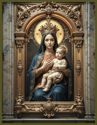 The “great sign” or “Great Lady” described by John’s vision in heaven represents the restoration of the Davidic Messianic kingdom, embodied in the figure of the Blessed Virgin Mary, who gives birth to the Messiah King. The Nativity of Christ aligns with the fulfillment of various Old Testament prophetic signs regarding this Restoration. The child born to this woman in the Book of Revelation is identified as the Messiah King, indicating that she must have been historically and literally recognized as the Virgin Mary. Moreover, from an allegorical viewpoint, this woman may symbolize both Israel and the Church (Rev 12:5; Ps 2:9). A notable aspect of this vision is the woman’s crowning, as she is the mother of a male child destined to “rule all nations with a rod of iron.” In the context of the ancient Davidic kingdom, the only other member of the royal court who received a crown alongside the king was the Queen Mother, who held a prominent role alongside him on the throne.