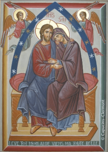 upon him as he sits with the Father, it was fitting that God’s Mother should possess what