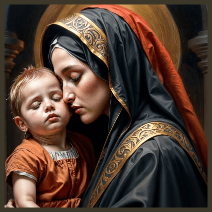 Daughter Zion is often personified in biblical literature as a representation of Jerusalem and, more broadly, the people of Israel. In a state of mourning, Daughter Zion questions why she finds herself overwhelmed by sorrow, paralleling the pain of childbirth. This image evokes the turmoil and trauma of exile and suffering. This lament can symbolize the collective grief of a people who have lost their way, their king, or their divine guidance. It indicates a deep yearning for restoration and the presence of leadership in times of distress. The Virgin Mary, on the other hand, as she stands at the foot of the cross, embodies the archetype of suffering that connects to the church and humanity. Her grief is profound as she witnesses the crucifixion of her son, Jesus Christ. In this moment, Mary’s pain is akin to that of Daughter Zion; both figures experience the weight of sorrow—Mary as a mother losing her child, and Daughter Zion as a nation witnessing the loss of hope and divine promise with the loss of the Davidic monarchy. Both figures also highlight themes of endurance in the face of suffering and the transformative power of grief. While mourning, they connect with a broader narrative of redemption. For Daughter Zion, there is a hope for restoration, and for Mary, her experience of loss is intertwined with the potential for new life through resurrection.