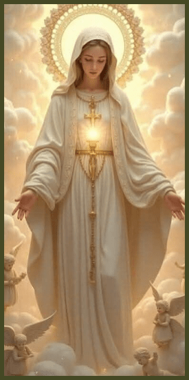 The Cross remains ever-present before her, a symbol of her enduring commitment to humanity’s salvation. In his final moments, Jesus affirms and ratifies Mary’s maternal saving office when he entrusts her to the beloved Disciple, saying, “Woman, behold your son,” and to the Disciple, “Behold your mother.” This poignant moment highlights not only Mary’s role as the Mother of Jesus but also extends her motherhood to all believers, inviting them into a profound relationship with her as their spiritual mother. Through her intercession, she continues to guide and strengthen the faithful, nurturing their journey toward eternal life.